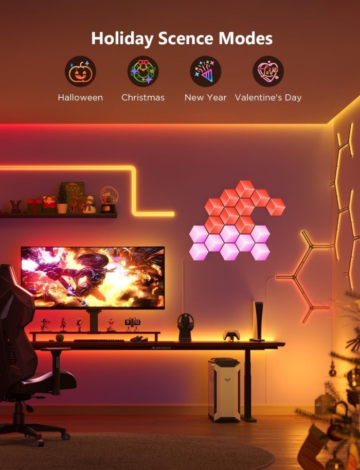 Powerful App and Voice Controls: Govee Home app provides powerful control and customization. When the time come to keep both hands on the keyboard dan mouse, use Alexa and other voice assistants to control Govee Glide hands-free. After winning the game, all it takes is a voice command then Govee gaming lights will cheer you on.